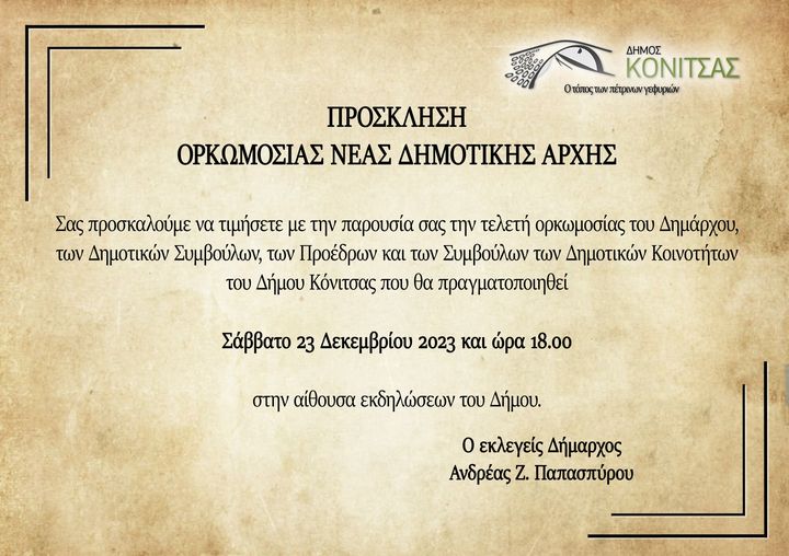 Δήμου Κόνιτσας, το Σάββατο 23 Δεκεμβρίου 2023, ώρα 18:00, στην αίθουσα